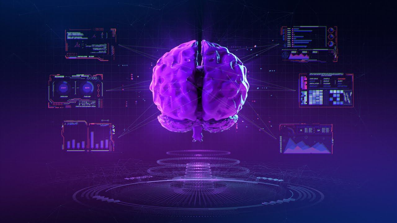 Анимированный абстрактный техно фон в стиле киберпанк: Сканер мозга