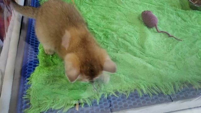 Одинокий котёнок пытается себя развлечь
