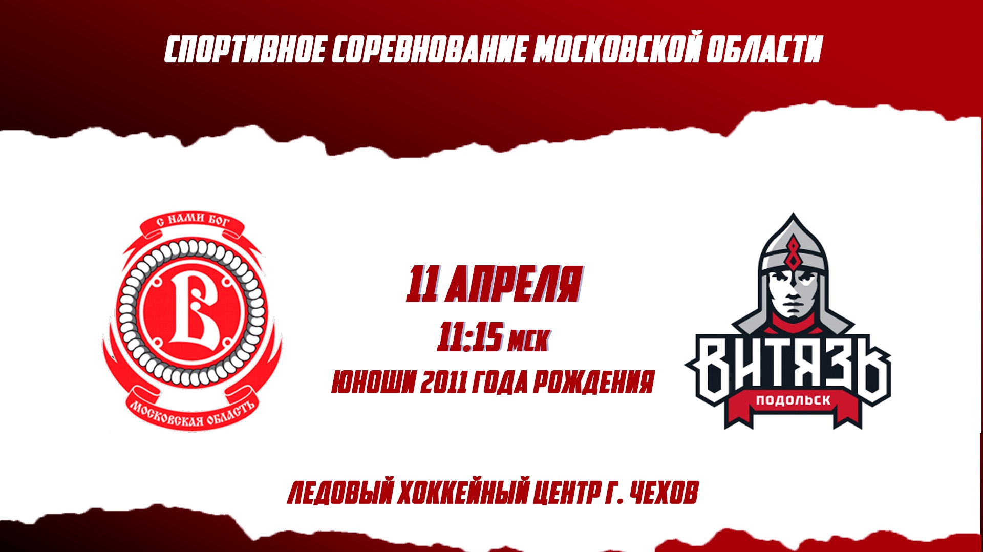 Спортивное Соревнование Московской Области юноши 2011 года рождения ХК ВИТЯЗЬ ЧЕХОВ 2011 - ХК ВИТЯЗЬ ПОДОЛЬСК 2011 11:15 Ледовый хоккейный центр г. Чехов