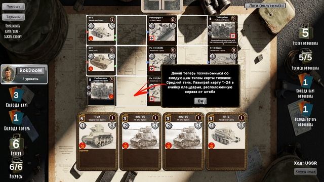 Демонстрация обучающего режима и первой миссии сценария за СССР в разрабатываемой мною карточной игре Tank General. Ссылка на демо-версию игры в VK Play: https://vkplay.ru/play/game/tank-general/?mt_link_id=isyaw9 Ссылка на демо-версию игры для Android: https://www.rustore.ru/catalog/app/com.RokDooM_TG