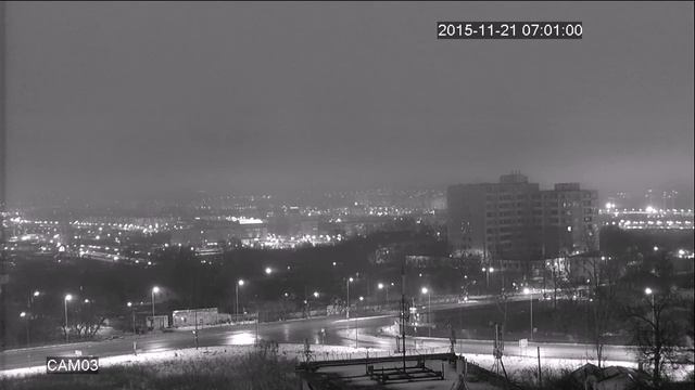 Образец записи с видеокамеры Tantos TSc-PL1080pAHDv (2.8-12) 2 Mp (1920 х 1080). Ночь, перекресток f=12, девятый этаж.