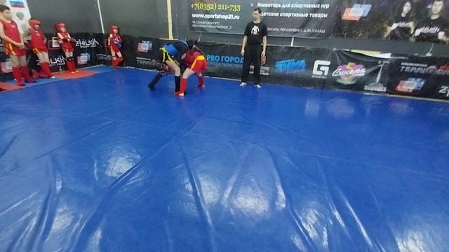 Товарищеская встреча ЦФПиСЕ Чемпион и СК Боец рездел борьба по ушу-саньда 2023г. черный Басов Дима