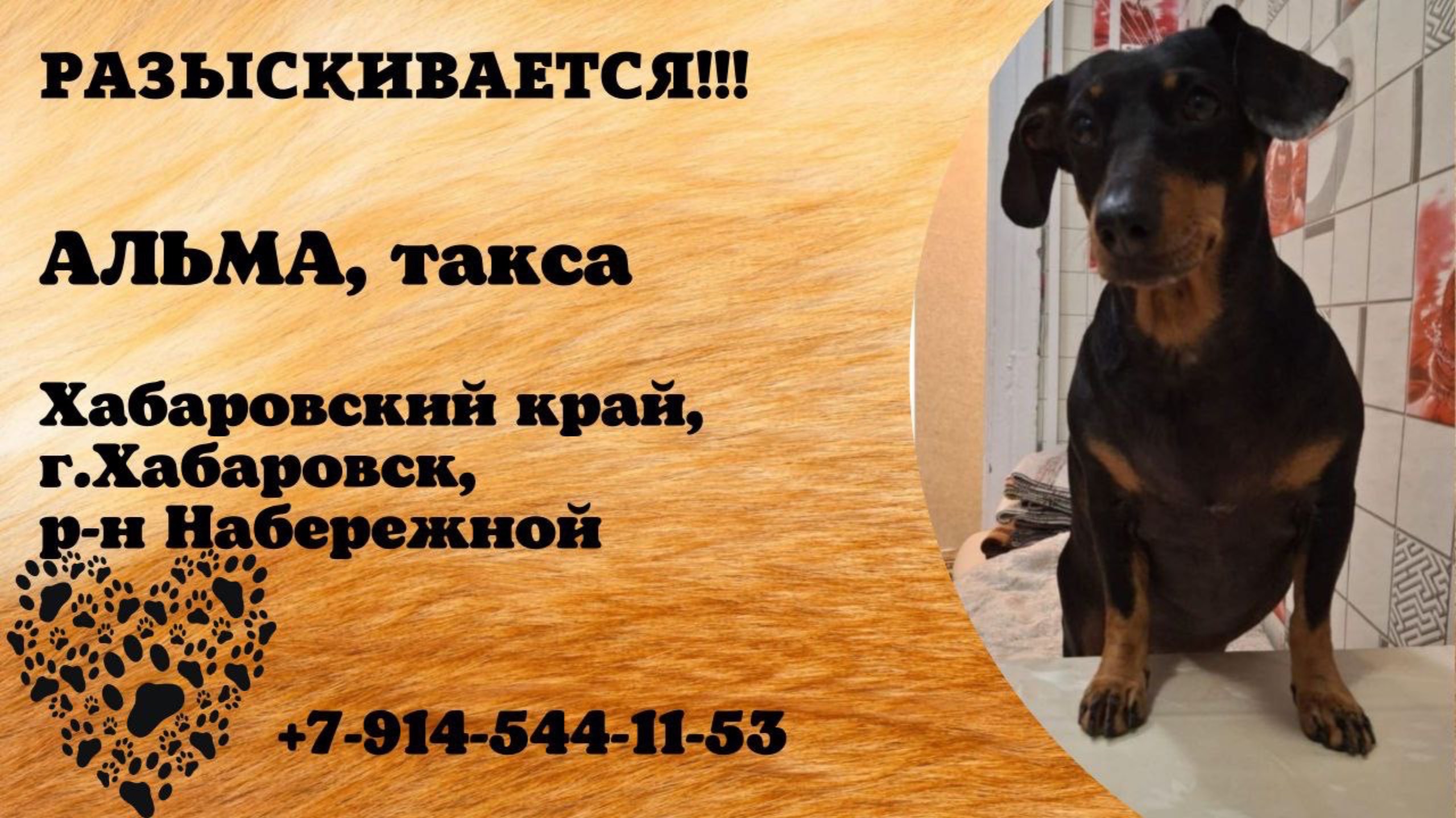 Пропала собака! АЛЬМА, такса. Хабаровский край, г.Хабаровск.
