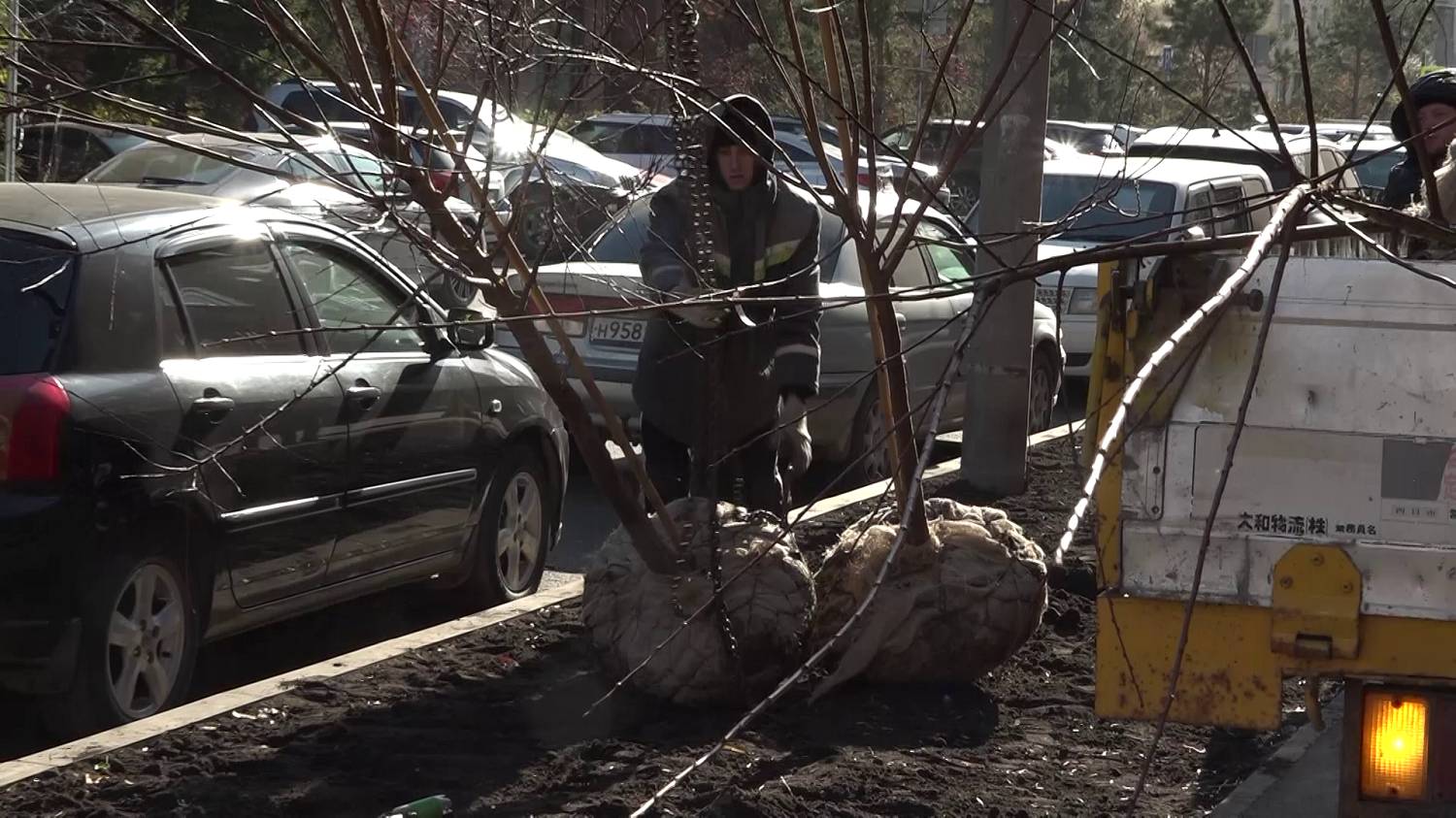 На улице Урицкого вместо старых аварийных деревьев высаживаю новые