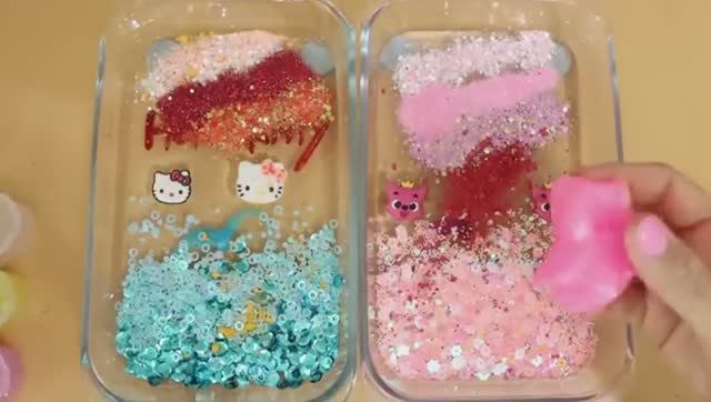 СЛАЙМ «Китти VS Пинкпонг»! Смешиваем макияж с блёстками в слайм! Видео со слаймом!