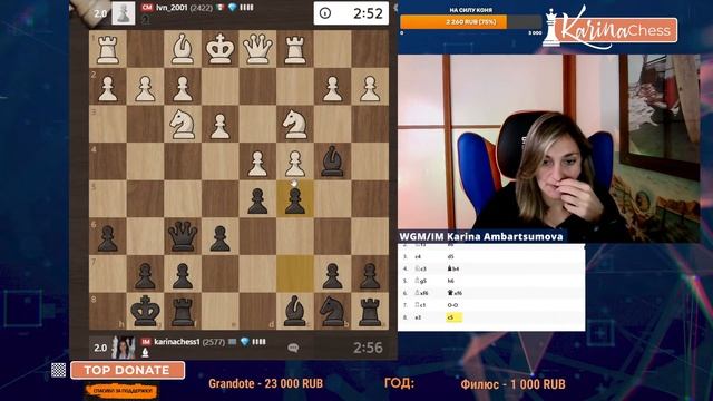 Титульный вторник на chess.com 11 туров 3+1 Поддержать канал: https://www.donationalerts.com/r/karinachess1 Обучающее сообщество и доступ к бонусам: https://boosty.to/karinachess Подписаться на мой канал: https://www.youtube.com/channel/UChor8u_hhgrjX2lt0QLzZHA?sub_confirmation=1 Обучающий курс "Пешечные структуры" http://bit.do/pawns-structures Рестрим: https://www.twitch.tv/karinachess1 Рада приветствовать Вас на канале женского международного гроссмейстера, международного мастера Карины Амбарцумовой! Я - профессиональная шахматистка и тренер. Здесь вы сможете найти обучающие видеоуроки по шахматам, комментарии турниров, стримы моей игры в блиц шахматы. Подписывайтесь на мои странички в соц.сетях: ВКонтакте: https://vk.com/karinachessclub Telegram: https://t.me/karinachess Instagram: https://www.instagram.com/1karinala7/ Twitch: https://www.twitch.tv/karinachess1 Почта для связи: karinachess@mail.ru Мой сайт: http://chesscoach.ru/ #шахматы #КаринаАмбарцумова #стримшахмат #шахматыблиц