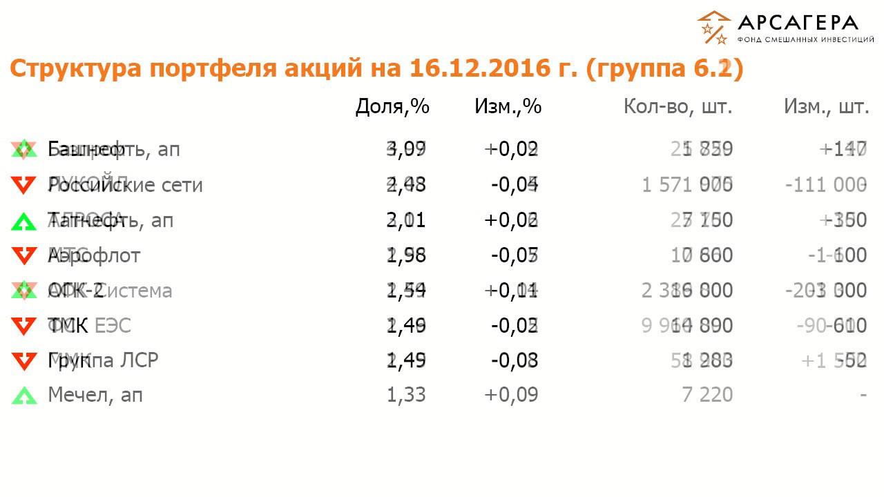 Наши фонды. ОПИФСИ «Арсагера – фонд смешанных инвестиций» с 02.12 по 16.12.16