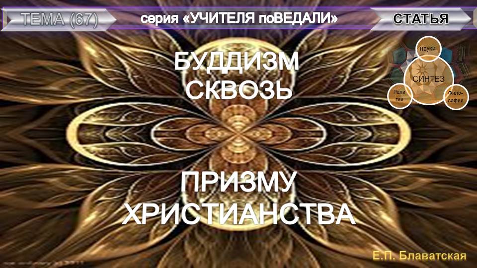 статья Е.П. Блаватской (1831-1891)- из серии Учителя ПоВедали - БУДДИЗМ СКВОЗЬ ПРИЗМУ ХРИСТИАНСТВА - статья Е.П. Блаватской (1831-1891)- из серии Учителя ПоВедали Подготовлено и продекламировано Небесной Нитью (май 2022).