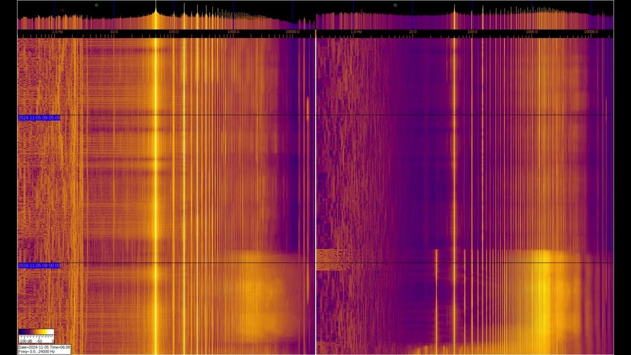 The left and right signals are taken from inductive sensors with ferromagnetic elements, but the left one is additionally connected to grounding on 2 stainless steel pins buried 1 m and spaced 1 m apart. You can see a large number of harmonics from the power supply and various artificial signals. Of interest are signals at frequencies below 50 Hz, where you can observe the operation of specialized equipment and communication signals of submarines and underground objects. Separately, it is worth considering signals in the region of 1-3 Hz on the left spectrum, which relate to the geomagnetic background, which is modulated by solar activity, They can be viewed in more detail in the video called “Signals from the Earth,” which are in the playlists below. The sound in the video is recorded in real time - a signal from sensors. О ПРОИСХОЖДЕНИИ ЧАСТОТНОЙ МОДУЛЯЦИИ СЕРПЕНТИННОЙ ЭМИССИИ https://youtu.be/bwWHggY1IVU?si=xAX1diRKI9MxQJ88&t=1740 Previous monitoring is in playlists: EMF monitor https://youtube.com/playlist?list=PLiRg2YCbXcwn41BHqADKVBep_TgVq6XUN Очень Низкая Частота ~ Very Low Frequency https://youtube.com/playlist?list=PLiRg2YCbXcwnp5DxM4PnSs7k_Rnypaqek SIGNALS IN THE GROUND https://youtube.com/playlist?list=PLiRg2YCbXcwl6f3Bf5arHbGSOCNE5U71O поддержать канал: 8-999-654-93-44