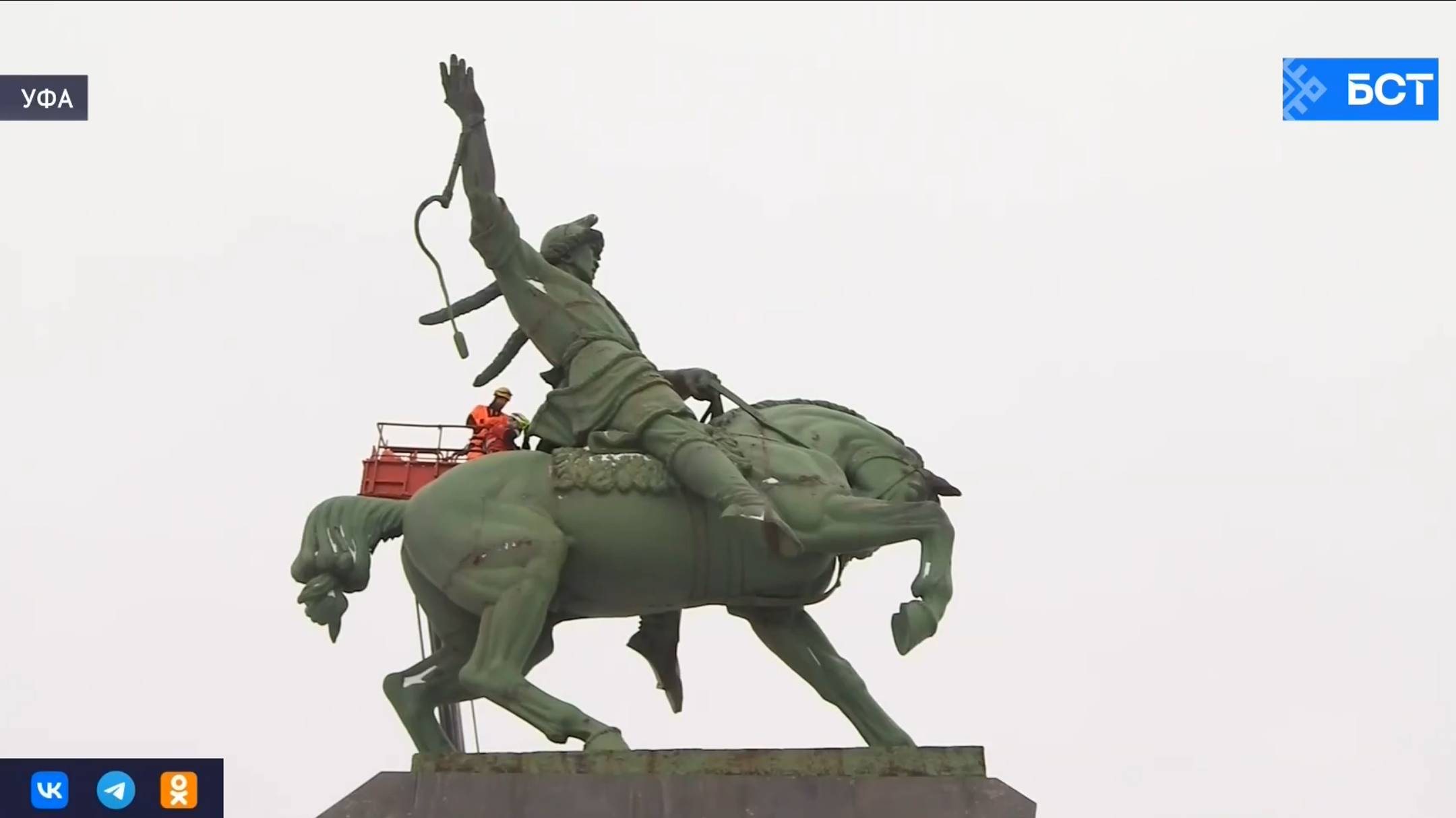 Насколько необходима реконструкция памятника Салавату Юлаеву? Ответ на этот вопрос должен дать документальный фильм «Я вернусь». Самая ответственная и волнительная часть съёмок началась сегодня утром. Одни из главных действующих лиц сегодня – это бойцы Уфимского поисково-спасательного отряда. Именно они первыми поднялись на памятник, чтобы открыть люк размерами 40 на 40, через который оператор телеканала БСТ смог попасть внутрь монументального сооружения.