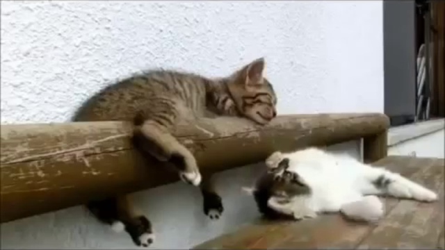 Котенок пытается разбудить своего брата!...