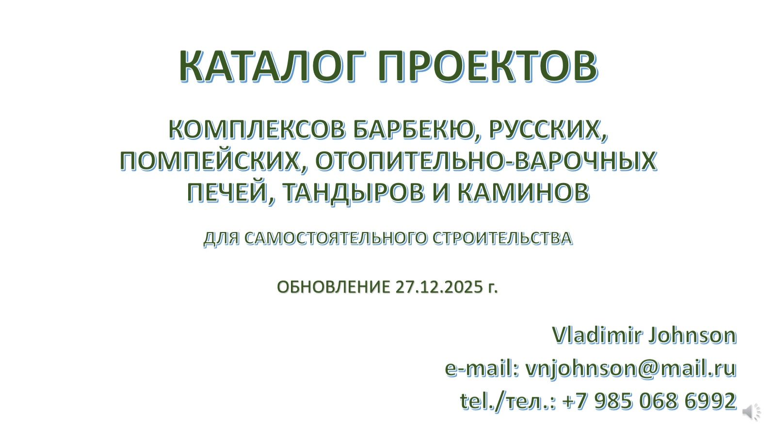 КАТАЛОГ ПРОЕКТОВ барбекю, русских, помпейских печей, тандыров и каминов. Обновление от 27.12.2025 г.