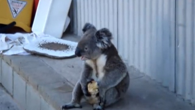 Коала ест яблоко