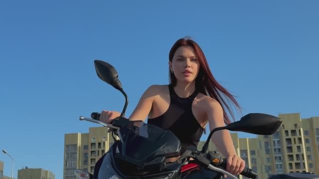Девушка и индийский мотоцикл APACHE 200 4V.