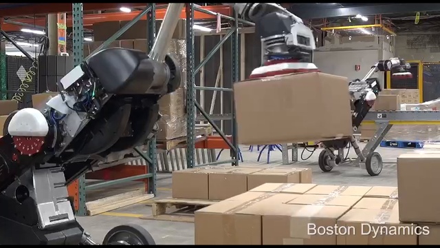 Компания Boston Dynamics показала на видео своего нового робота, который сможет заметить грузчиков на логистических складах. Робот оснащен двумя колесами и специальной рукой-манипулятором, способной поднимать коробки с весом до 15 килограмм. На ролике показано, как устройство с легкостью разгружает прибывший на склад поддон с коробками. Похоже, грузчикам и кладовщикам пора задуматься над освоением других профессий в будущем.
