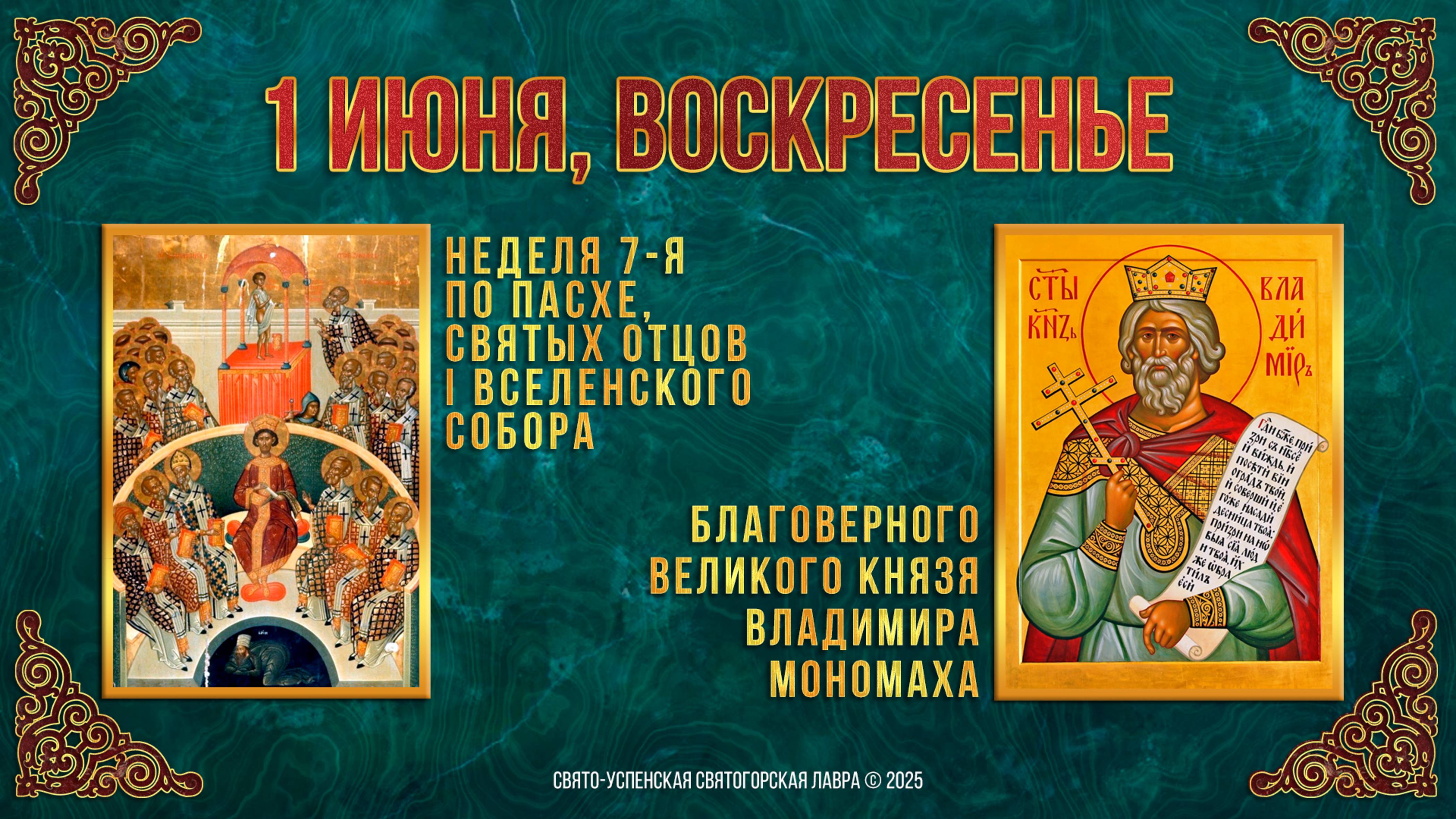 Неделя 7-я по Пасхе, св.отцов I Вселенского Собора. Бл. князя Владимира Мономаха. 01.06.2025 г.