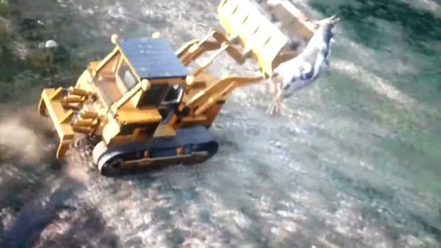 GTA V: LIFTING COWS WITH A BULLDOOZER