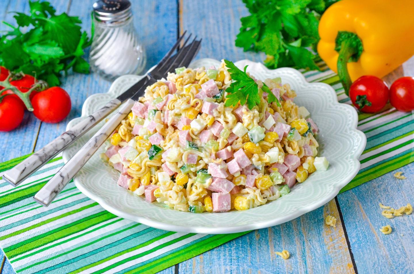 КАК ПРИГОТОВИТЬ САЛАТ ИЗ РОЛЛТОНА С КОЛБАСОЙ