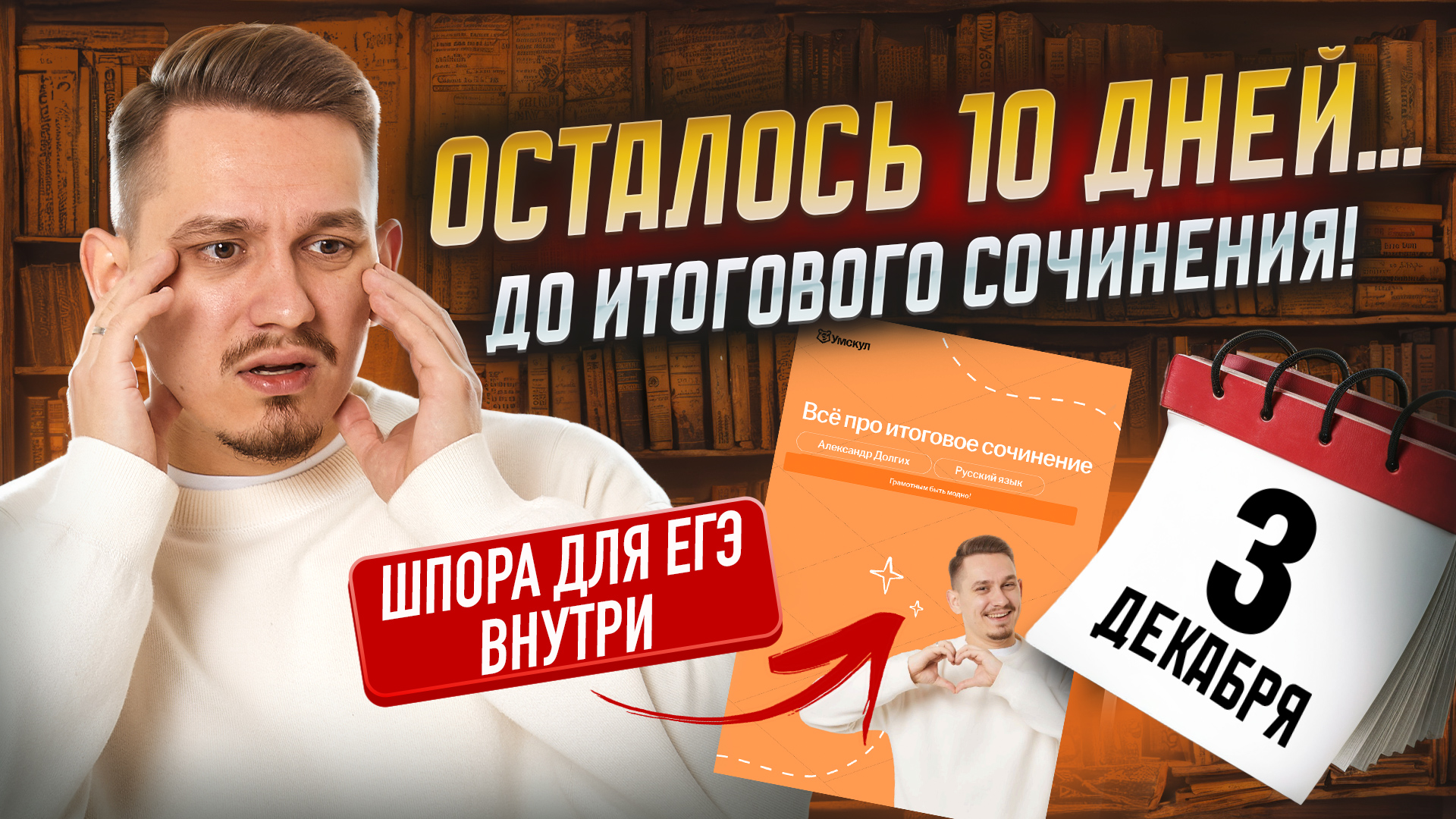 ➡️ Забирай бесплатные полезные файлы для подготовки к ЕГЭ по русскому из закрепа в телеграм-канале: https://short.umschool.net/rt_tgdlgh Я Александр Долгих, готовлю 11-классников к ЕГЭ по русскому языку в онлайн-школе «Умскул». Я подготовил 1 495 стобалльника, а 19 000+ моих учеников сдали на 90+. Учу понимать русский язык, а не зубрить 💪 💯 Готовься к ЕГЭ вместе с Умскул уже сейчас, чтобы точно сдать на максимум. Переходи по ссылке, чтобы записаться или задать вопрос: https://short.umschool.net/rt_rus_ege Мы составим для тебя персональный трек обучения по 4 предметам так, что ты не выгоришь, и поможем поступить в вуз, о котором ты мечтаешь! С нашими преподавателями ты точно поймёшь и полюбишь предмет и узнаешь обо всех подводных камнях экзаменов. Немного об Умскул: — Каждый 8-й стобалльник России в 2025 году готовился в Умскул. — Подготовили 4900+ стобалльников. — 47 000+ наших учеников сдали ЕГЭ на 90+. — 80 000+ отличников сдавших ОГЭ — За 9 лет подготовили 600 000+ учеников к ЕГЭ и ОГЭ. Если ты в 10-м классе, тебе поможет моя коллега Мария Вельф — она готовит 10-классников к ЕГЭ: https://short.umschool.net/ext_velf 🔔 Подписывайся на канал, ставь лайк и жми на колокольчик, чтобы не пропустить новые видео! #умскул #егэ #русский