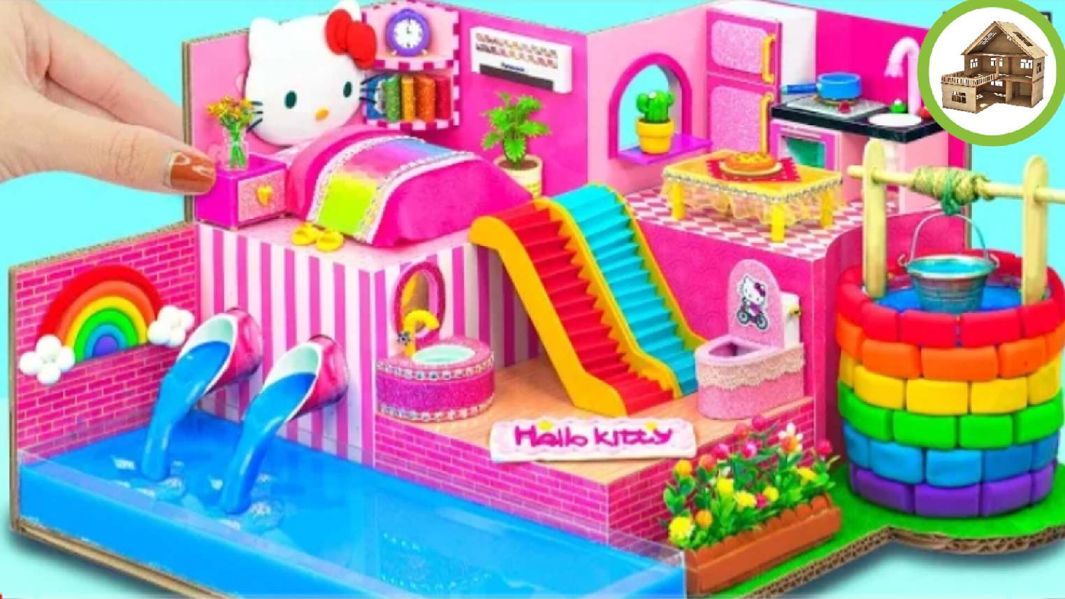 Миниатюрный домик hello kitty в домике кухня и бассейн, колодец для воды, из кортона /191