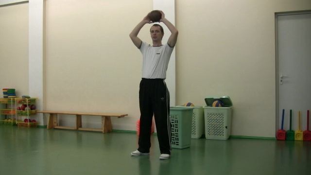 Броски набивного мяча способом "Из-за головы"
