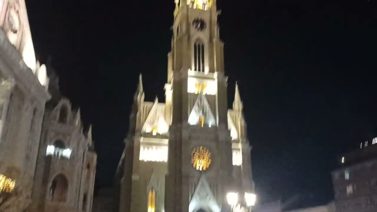 Католический храм Святая Мария. Вечером. На площади Свободы г Нови Сад. Сербия.