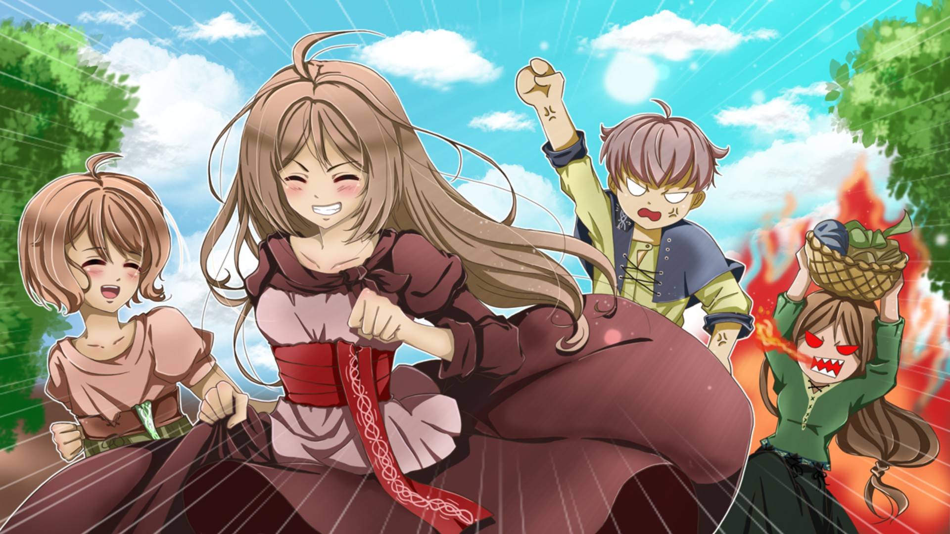 Весёлый бег по деревне в визуальной новелле Lighthouse of guiding flames
