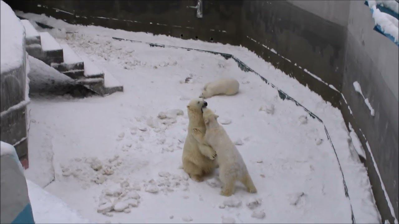 Герда родилась в Москве 20 ноября 2007 года. Её мама Симона, папа Врангель. В Новосибирск переехала 05.08.2008. В 2013 году у Герды и Кая родилась Шилка. В 2015 году она переехала в Японию. В 2015 году родился Ростик. 6 декабря 2018 года он переехал в Китай. В 2018 году родились Норди и Шайна. Данная пара молодых медведей находилась вне экспозиции зоопарка, поэтому посетители не могли их видеть. Передача молодых медведей в другой зоопарк не планируется, — ответили на запрос редакции в пресс-центре мэрии Новосибирска. Но Шайна 20 января 2024 года переехала в Ижевский зоопарк. Белые медведи одиночные животные. Как правило, миролюбивы по отношению друг к другу, но между самцами в брачный период случаются стычки. Взрослые самцы могут нападать на медвежат. Гон с марта по июнь. Продолжительность жизни — максимум 25—30 лет; в неволе рекорд долгожительства — 42 года. Вес очень крупных самцов в некоторых частях ареала 700 и даже 800 кг: есть данные о зверях весом до 1000 кг. Обычно вес меньше. Самки всегда не только меньше, но и значительно легче самцов. Так, самцы в восточной Гренландии в состоянии нормальной упитанности весят 400—450 кг, хорошо упитанные — до 500 кг, самки, даже очень сытые, здесь же редко весят больше 350—380 кг, т. е. их вес составляет около 75% веса самцов. Длина тела на 3-й день после рождения 28—32 см, средний вес — около 755 г (650—840 г). На 26-й день длина тела увеличивается незначительно — до 35—38 см, а вес возрастает до 1125—1275 г. В возрасте 60 дней самцы весят около 7 кг, самки — около 6 кг при длине тела у первых 58—60 см, у вторых 54—58 см. В возрасте 4 месяца медвежата достигают веса 22—23 кг, в 6-месячном возрасте при длине около 110 см — 40—43 кг, в 8-месячном — 58—62 кг. Длина тела в возрасте с 6 до 9 месяцев нарастает по 6—7 см в месяц. Во время зимнего сна рост почти прекращается. В зоопарке медведей кормят утром морской рыбой, хлеб с рыбьим жиром внутри, морковь, яблоки, морская капуста, яйцо дают сырое. Медвежат подкармливают молоком из соски. На ужин мясо (говядина, конина, куры или индейка). Летом и осенью арбузы, дыни, ранетки, кабачки, тыквы, огурцы. Когда показательное кормление летом бросают живую рыбу. Медвежата с медведицей находятся до 2-х лет. 16 декабря 2022 года Герда родила 2-х медвежат. И это две девочки! Имена дали 25 июня. Медвежат зовут Стрелка и Белка. Обзор вольеров белых медведей https://www.youtube.com/watch?v=mAt_b7JD0B4&list=PLGvf0V-rAHxkpGKJaWIZIUxRKgKiqV3xZ&index=17&t=0s