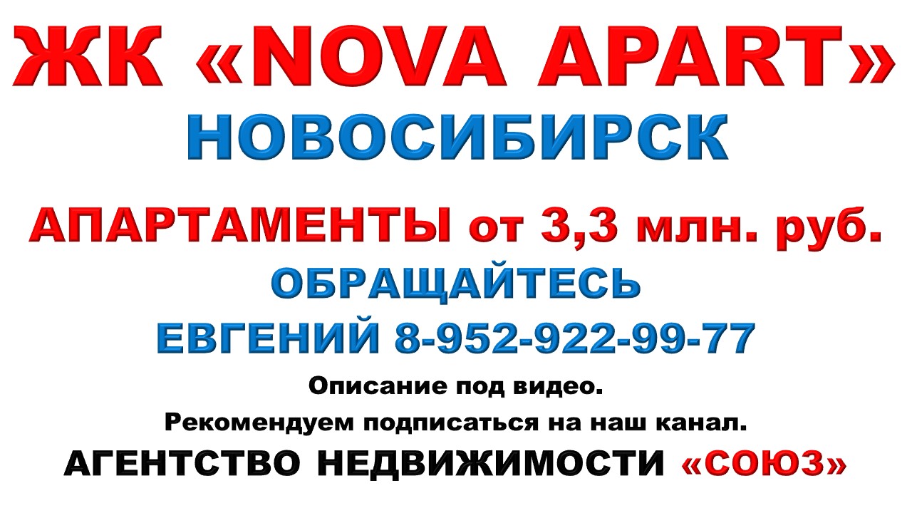Агентство недвижимости "Союз" в Telegram: https://t.me/ANSOYUZ Агентство недвижимости «СОЮЗ» Покупайте: Апартаменты в ЖК "NOVA APART". Новосибирск. Ваш агент по новостройкам Евгений 8-952-922-99-77 (WhatsApp) Цены на апартаменты точно такие же как и у застройщика. Апартаменты продаются БЕЗ РИЭЛТОРСКОЙ КОМИССИИ !!!. Ст. - от 3 млн. 280 тыс. руб. (от 19 391 руб. в месяц) Площадью: от 26.15 кв.м. до 39.43 кв.м. 1к. - от 4 млн. 100 тыс. руб. (от 24 239 руб. в месяц) Площадью: от 34.16 кв.м. до 51,37 кв.м. 2к. - от 7 млн. 030 тыс. руб. (от 41 561 руб. в месяц) Площадью: от 61,29 кв.м. до 63,2 кв.м. Потолки: 3,02 м. Тип дома: кирпично-монолитный Срок сдачи: 1 квартал 2024 Срок выдачи ключей: 3 квартал 2024 года. Отделка: Подготовка под чистовую отделку Парковка: подземная Сделка оформляется по ДДУ. Городской комплекс апартаментов комфорт-класса, состоит из 242 номеров. Расположение вблизи улицы Кирова, рядом с улицами Чехова и Тургенева, обеспечивает близость к центру и одновременную удалённость от суеты мегаполиса. Октябрьский район – исторически учебная цитадель города. В нем располагаются сразу три университета, входящие в число лучших в Сибирском федеральном округе, а также государственная публичная библиотека СО РАН. В нескольких шагах от комплекса находятся торговые центры, спортивные учреждения разного профиля, десятки ресторанов, кафе и магазинов. Рядом находятся школы, детские сады, медицинские учреждения, магазины и ВУЗы. Близость комплекса к одной из главных транспортных артерий города, улице Кирова, обеспечивает возможность без труда добраться в любую точку Новосибирска: 5 минут от дома до остановки общественного транспорта. В комплексе представлены апартаменты различной планировки и площади, от 23,63 до 63,30 кв.м, что дает возможность обустроить жизненное пространство под любые цели. Собственная инфраструктура на первом этаже здания и тёплая подземная парковка станут дополнительными составляющими комфорта. Кашированный ПВХ-профиль с двухкамерным стеклопакетом на окнах, металлические входные двери с полимерным покрытием, высота потолков — 3 метра. Первый этаж предусмотрен для развития сопутствующей инфраструктуры, закрывающей потребности жителей комплекса. Здесь могут располагаться магазины, аптеки, прачечные, салоны красоты, медицинские учреждения или офисы. В подъездах и холлах присутствует лаконичность, сдержанный дизайн и современные архитектурные решения, призванные создать пространство максимальной свободы, наполненное светом и воздухом. Покрытие пола выполнено из долговечного керамогранита, имитирующего натуральный камень, стены оформлены дизайнерской штукатуркой. Уют и тепло пространству добавляют элементы экостиля – высокие растения в напольных кашпо, декорирующие оконные проёмы, стены и входную зону. Для короткого отдыха или удобства ожидания в вестибюле расположена мягкая зона отдыха со стеллажом для бук-кроссинга. Возможна отделка "под ключ" за дополнительную оплату. https://soyuz-rf.ru/