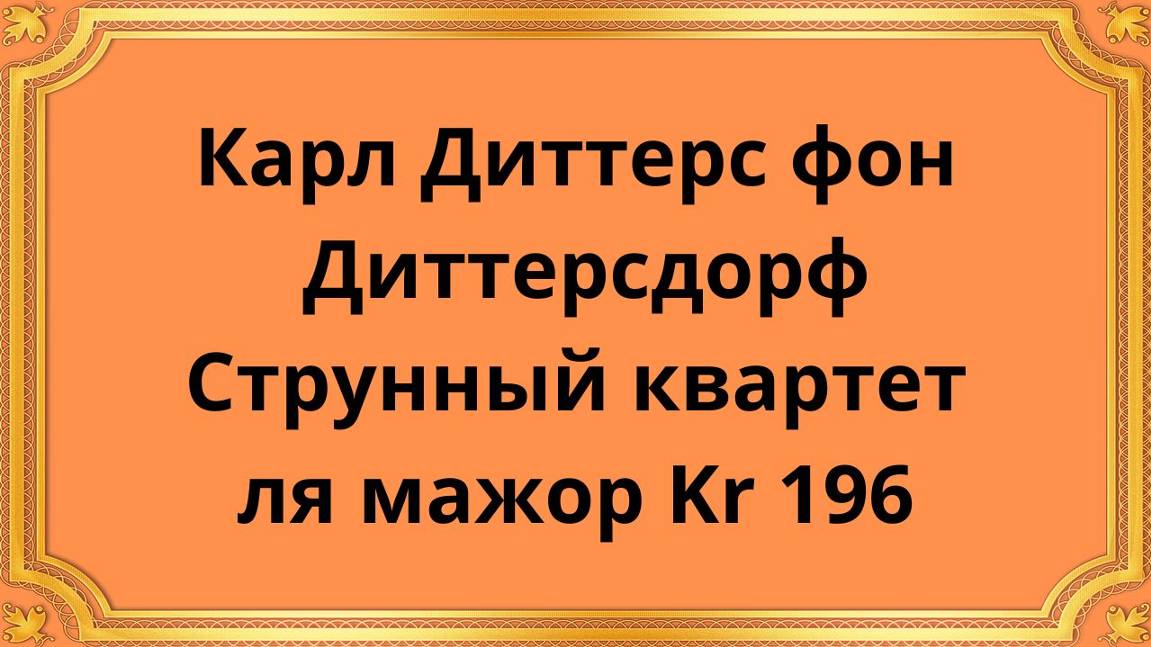 Карл Диттерс фон Диттерсдорф Струнный квартет ля мажор Kr 196