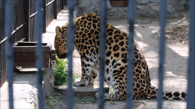 Дальневосточный леопард Хасан кушает траву 15.05.2025