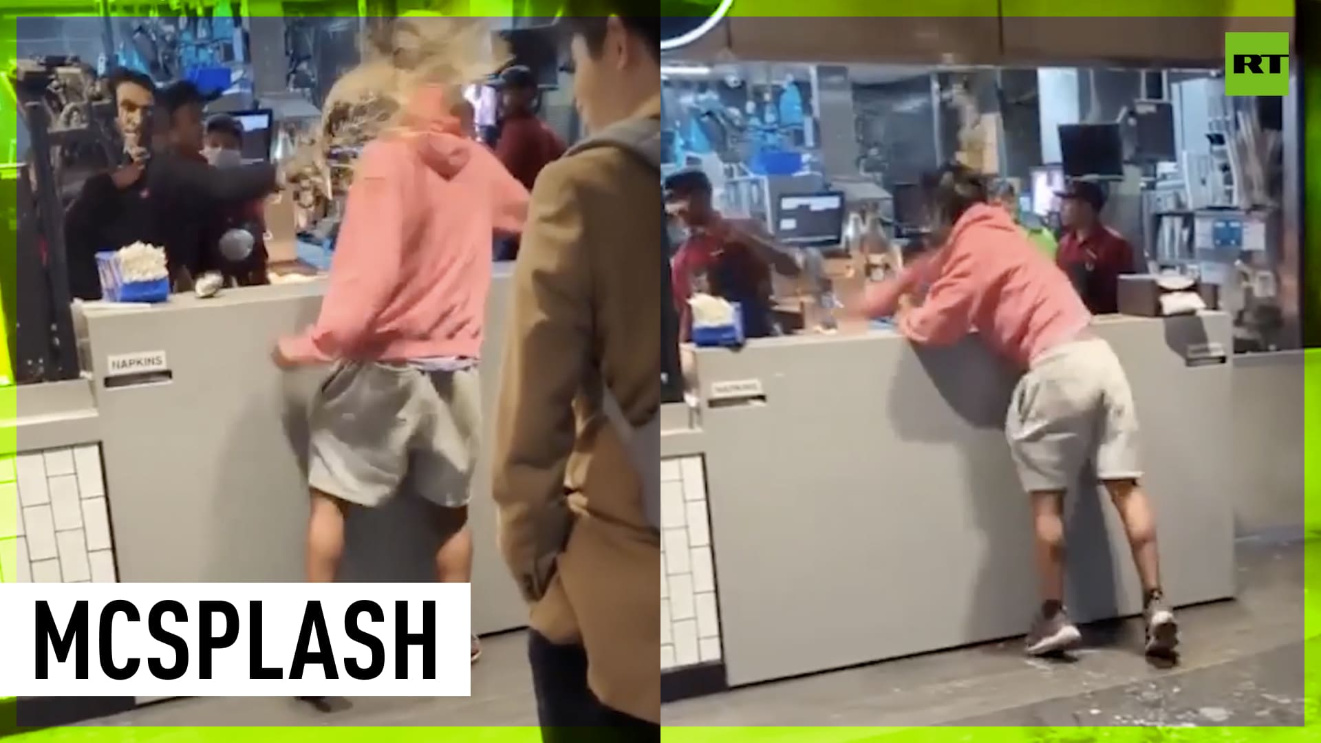 A beverage fight ensued in Sydney's McDonald's after an employee launched a drink in a disruptive customer's face after he reportedly went behind the counter and threatened the crew -------------------------------------------------------------------------------------------------- Freedom over censorship, truth over narrative. Follow us on Facebook: https://www.facebook.com/RTnews Follow us on Telegram: t.me/rtnews Follow us on Twitter: https://twitter.com/RT_com