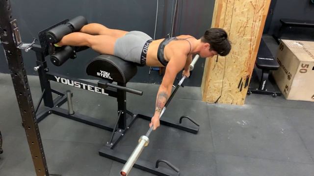 экстензии бедер со штангой рывковым хватом