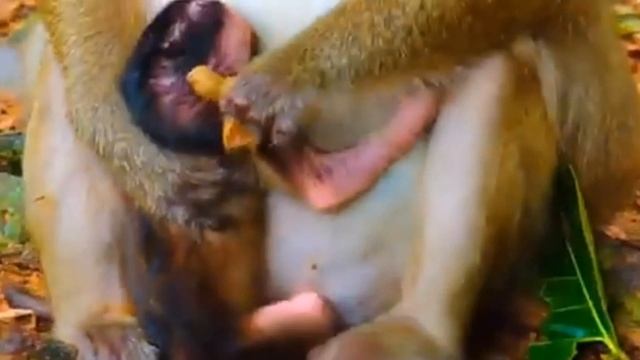 Завтрак в семье обезьян. Очень удобно, когда у макаки... 1000037287.mp4