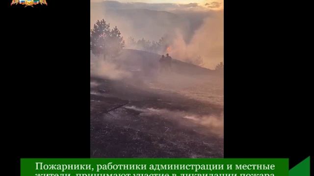 Пожарники, работники администрации и местные жители принимают участие в ликвидации пожара