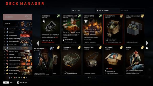This build centers around reaping the most benefits out of Tala's Bleed ability that is applied on damage. Firstly, the only mobility card I added was Run Like Hell because it is the single best mobility card in the game. Shredder and Glass Cannon amplify the bleed mechanic significantly. Confident Killer and Belligerent would be decent choices for this purpose as well. Phosphorous Tipped is a new card that released with the most recent chapter that has the chance of applying fire damage to affected enemies. The rest of the cards are just basic DPS cards and economy oriented cards such as Money Grubbers and Copper Scavenger. Additionally, you could replace Grenade Pouch for Lucky Pennies for more economy. The card list: 1. Run Like Hell 2. Shredder 3. Hyper Focused 4. Widemouth Magwell 5. Reckless Strategy 6. Glass Cannon 7. Reload Drills 8. Cold Brew Coffee 9. Ammo Belt 10. Large Caliber Rounds 11. Knowledge is Power 12. Phosphorous Tipped 13. Money Grubbers 14. Copper Scavenger 15. Grenade Pouch