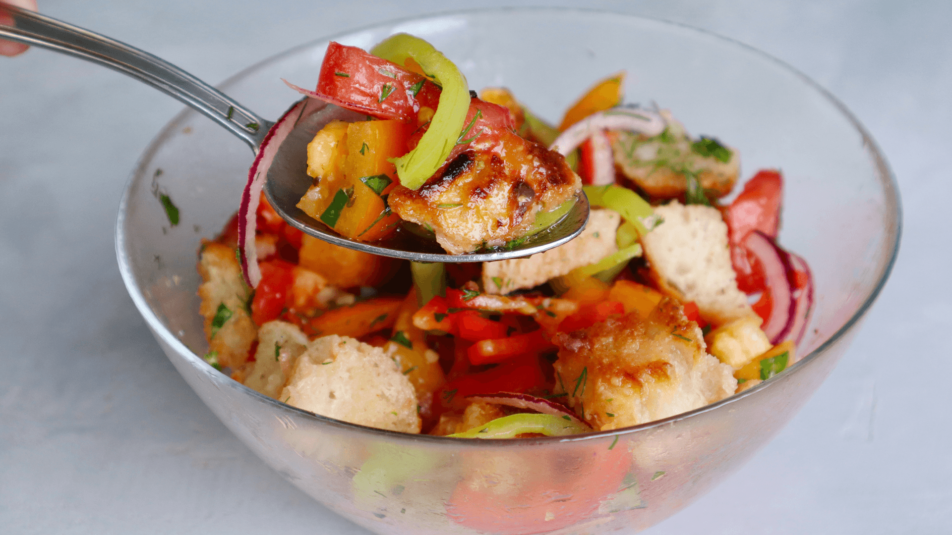 Первым приготовим салат Панцанелла – это классический итальянский салат с хлебом. Ингредиенты: ✔ Хлеб ✔Помидоры ✔Болгарский перец ✔Красный лук ✔Уксус (у меня яблочный) ✔Соль ✔Перец Приготовление: Для салата прекрасно подойдет затвердевший хлеб, у меня был только свежий поэтому я подсушу его в сковороде. Для этого нарезаем на кусочки и обжариваем на небольшом количестве масла. Теперь нарежем овощи. В рецептах я видела, что используют и помидоры, и огурцы, и болгарский перец. Я сделаю без огурца. Нарезаю красный болгарский перец, зеленый перец, красный и желтый помидор. За счет того, что овощи разных ярких цветов салатик смотрится очень аппетитно. Нарезаю тонко красный лук. Так же добавлю укроп. Соединяем овощи, укроп и гренки в чашке. Добавляем растительное масло, уксус (лучше взять яблочный или винный), соль и перец. Перемешиваем и салат готов. Вторыми приготовим помидорки с маринадом из болгарского перца. ⠀ Ингредиенты: ✔ Помидоры – 3 шт. ✔ Болгарский перец – 1 небольшой ✔ Чеснок 3 зубчика. ✔ Зелень ✔ Сахар 0,5 ст.л. ✔ Соль 0,5 ст.л. ✔ Растительное масло 1,5 ст.л. ✔ Уксус 9% 0,5 ст.л. ⠀ Приготовление: Начнем с маринада. В блендер закидываю болгарский перец, по желанию острый перец, чеснок, зелень, у меня петрушка и укроп, сахар, соль, растительное масло и уксус, перемешиваем. ⠀ Помидоры лучше брать маленькие и нарезать на четвертинки, но я нашла просто шикарные, крупные помидоры, поэтому буду нарезать хаотично. ⠀ На дно наливаю маринад, сверху помидоры, теперь маринад и так далее. Оставляем на сутки в холодильнике. Такие помидоры долго не хранятся, поэтому советую делать небольшими партиями. Отлично и в салат, и на бутерброд. ⠀ Ну и еще один быстрый рецепт помидоров в маринаде. Ингредиенты: ✔ Помидоры – 500 гр. ✔ Чеснок – 10 гр. ✔ Мед – 20 гр. ✔ Уксус ( у меня яблочный, можно заменить на лимон) – 1 ч.л. ✔ По желанию зелень ✔ Перец ✔ Соль Приготовление: Помидоры нарезаем, добавляем чеснок, зелень, мед, уксус, перец и соль. Перемешиваем и оставляем в холодильнике на 30 минут. Через 30 минут помидорки готовы, можно дегустировать.