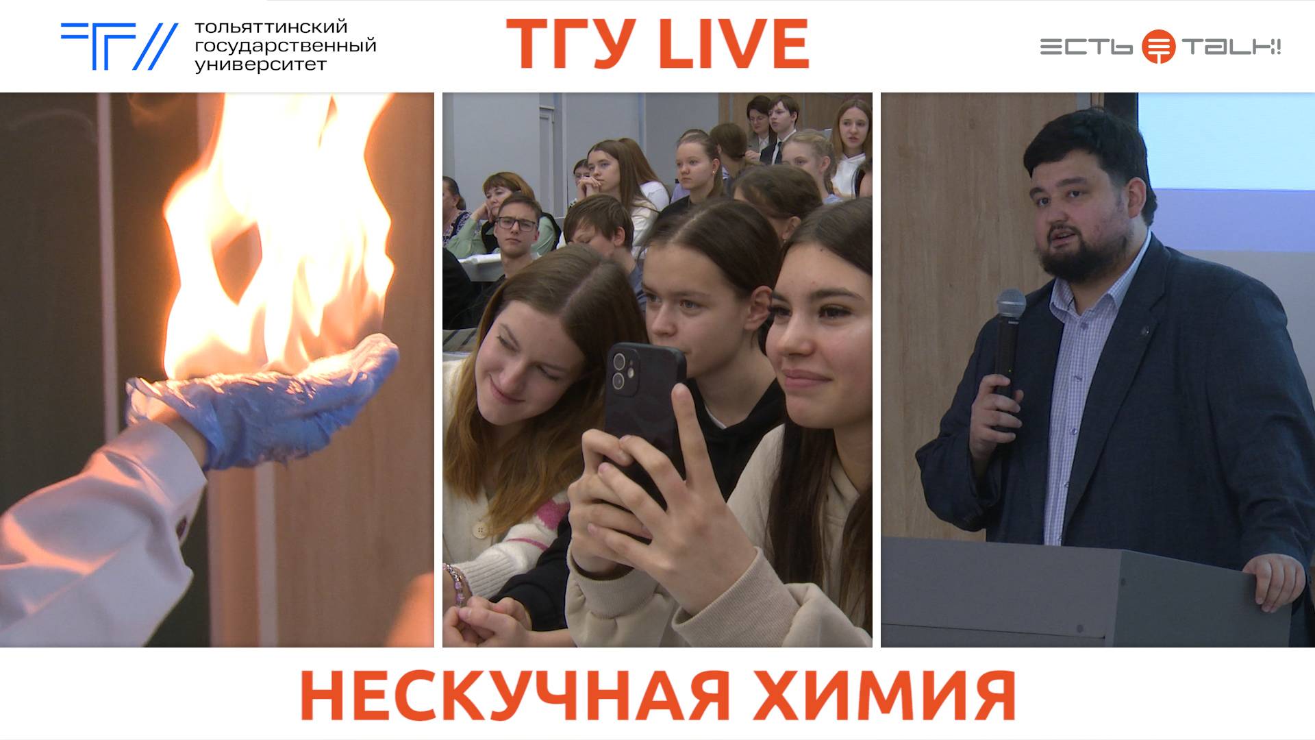 15 ноября в Тольяттинском госуниверситете АО «Тольяттиазот» открыло второй сезон профориентационного проекта «Планета ТОАЗия». Следующие 7 месяцев учащихся тольяттинских школ ждут открытые лекции, конкурсы, образовательные и творческие мероприятия. Для 170 из них в аудитории института химии и энергетики прозвучала лекция кандидата химических наук, доцента центра медицинской химии ТГУ Сергея Сокова «Нескучная химия». А специалисты АО «Тольяттиазот» провели мастер-класс по подготовке видео для конкурса в рамках «Планеты ТОАЗии», а также показали интересные химические опыты 15 ноября 2024 г., Тольяттинский госуниверситет