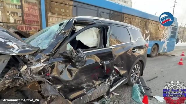 Кадры из салона автобуса в момент ДТП: ПАЗ выехал на встречку и столкнулся с автобусом в Красноярске