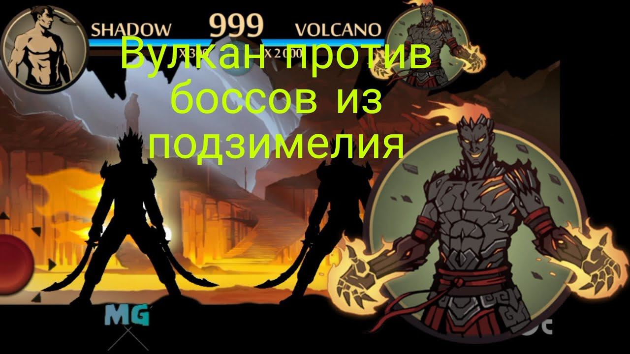Shadow Fight 2 супер вулкан против всех боссов из подземелья