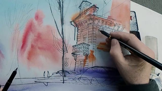 Городская зарисовка Пленэр Акварель Рисую и объясняю Что и как рисовать честному художнику в городе?