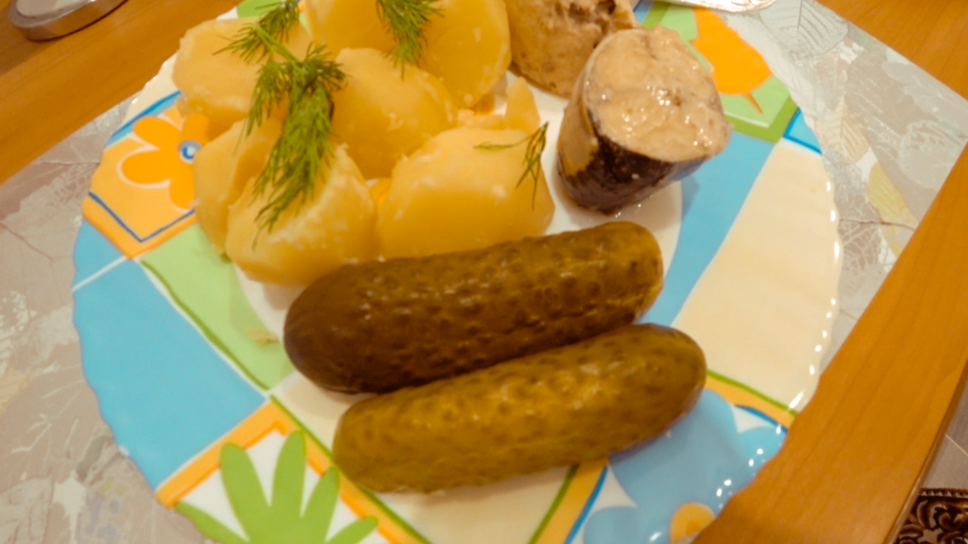 Картошка с зеленью, соленые огурцы и скумбрия. #мукбанг #влог #фудблог