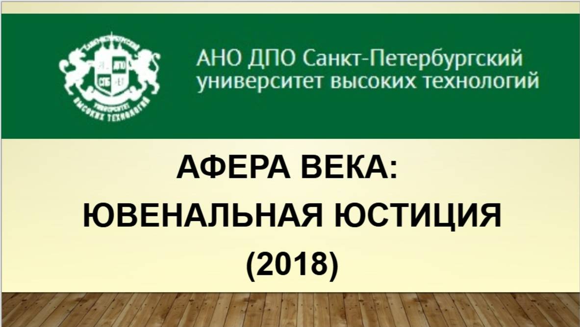 Афера века: ювенальная юстиция (2018) Второй вебинар Книжной лавки на эту тему состоялся 11.07.2018 г. Ведущая Ирина Дедюхова Читать по теме: Афера века: ювенальная юстиция https://ogurcova-portal.com/afera-veka-yuvenalnaya-yustitsiya/ (2017/2018) Анна Черненко «Ювеналка» https://ogurcova-portal.com/anna-chernenko-yuvenalka/ Источники: Научно-технический портал «Технарь» https://ogurcova-online.com/ "Книжная лавка" https://ogurcova-portal.com/ "Литературное обозрение" https://litobozrenie.com/ Вебинар разработан и проведен в рамках образовательных программ АНО ДПО СПБ УВТ - Санкт-Петербургский университет высоких технологий https://univer.spb.ru/ в соответствии с законодательством об образовательной деятельности в РФ N 273-ФЗ по лицензии №3911 Комитета по образованию Правительства СПб https://univer.spb.ru/wp-content/uploads/2019/12/license015small-1.jpg
