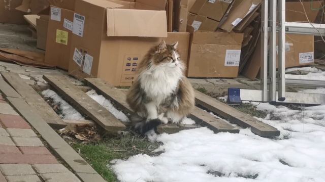 Пушистая кошка и резкий звук | Снег