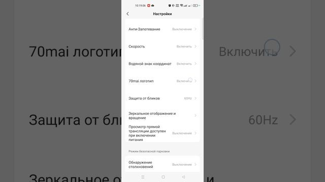 Меню видеорегистратора А510 в приложении 70mai