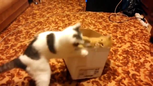 Рыжий кот занял коробку и не желает выходить из неё.Но другому коту это совсем не нравиться. #кошки #битва #коробка #прикол
