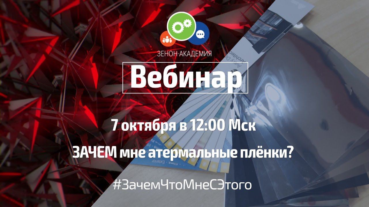 7 октября в 12:00 по московскому времени приглашаем вас на первый вебинар осеннего цикла. Темой вебинара станет новинка ассортимента компании ЗЕНОН - атермальные плёнки, мы ответим на следующие вопросы: Зачем мне атермальные плёнки и что это такое? Как правильно выбрать эту плёнку? Атермальные плёнки - это защита только от солнца? Чем отличается экстерьерная плёнка от интерьерной? Как сэкономить на оклейке и не попасть впросак? и ЧТО Я БУДУ С ЭТОГО ИМЕТЬ? А также в программе тестирование плёнки с помощью молочного шоколада! До встречи в прямом эфире!