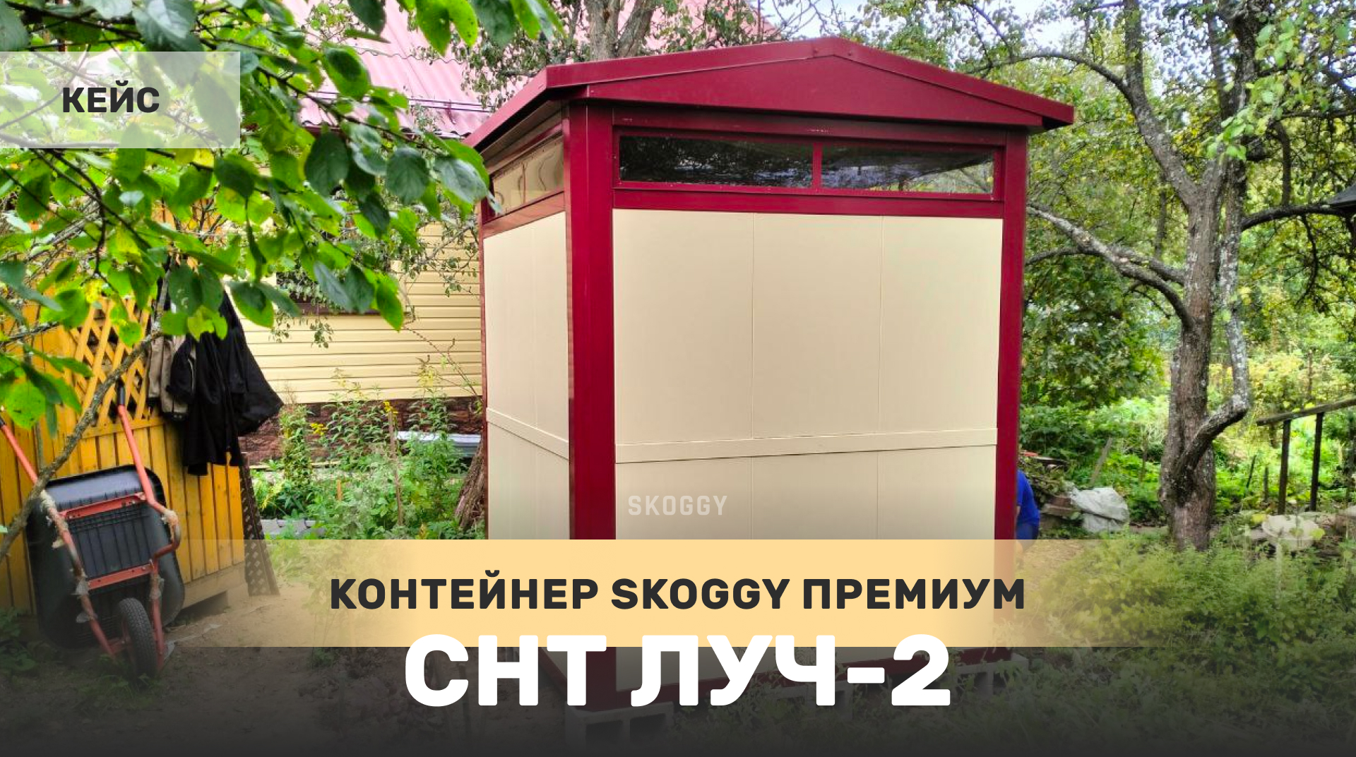 Двухцветный премиум контейнер SKOGGY c двускатной крышей в СНТ Луч-2