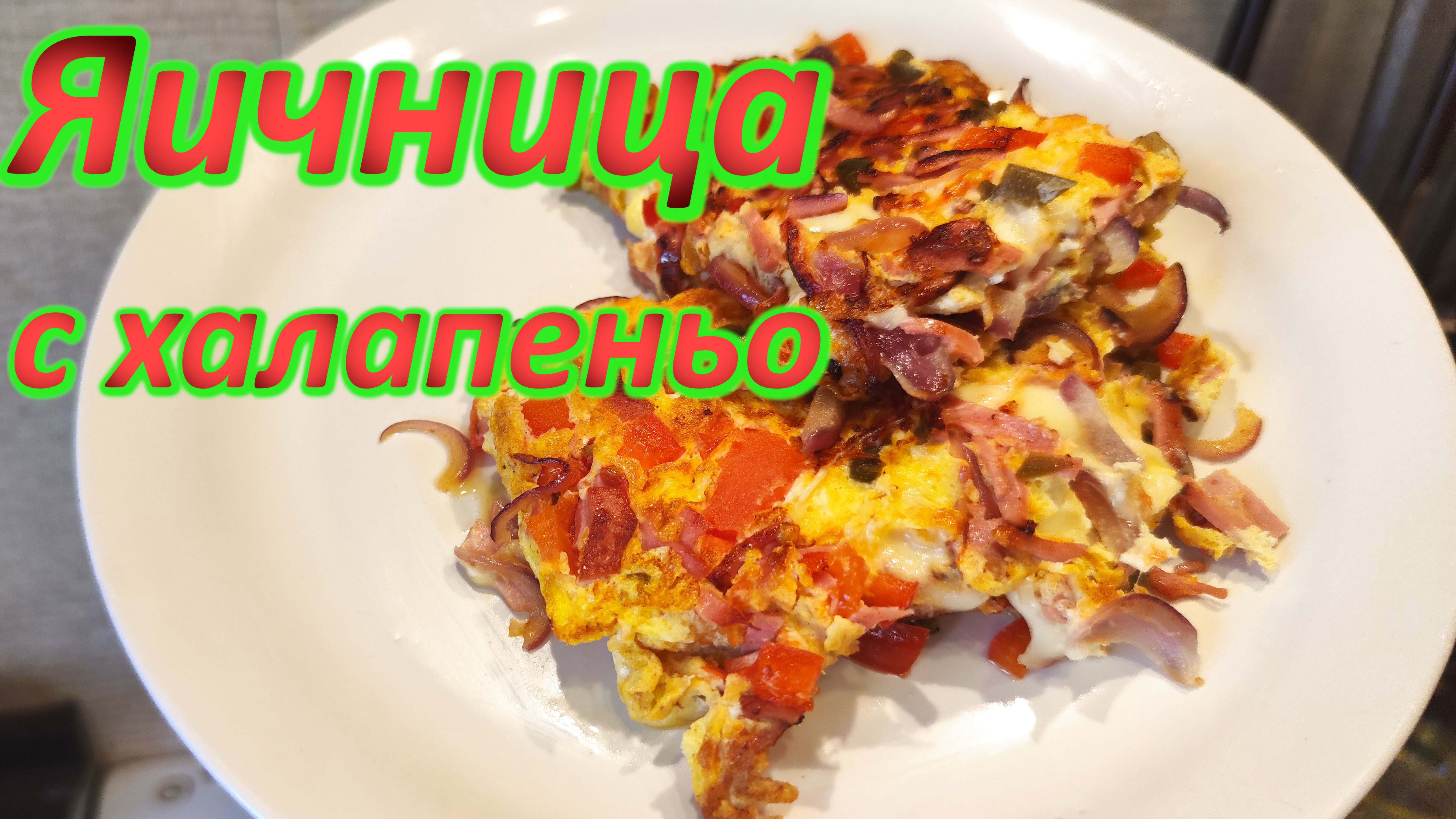 Вкусная яичница "ассорти с маринованным перцем халапеньо" на завтрак.