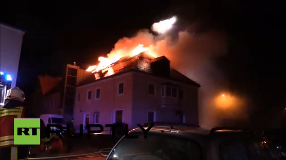 Германия. Горит приют для беженцев (21.02.2016 г.)
